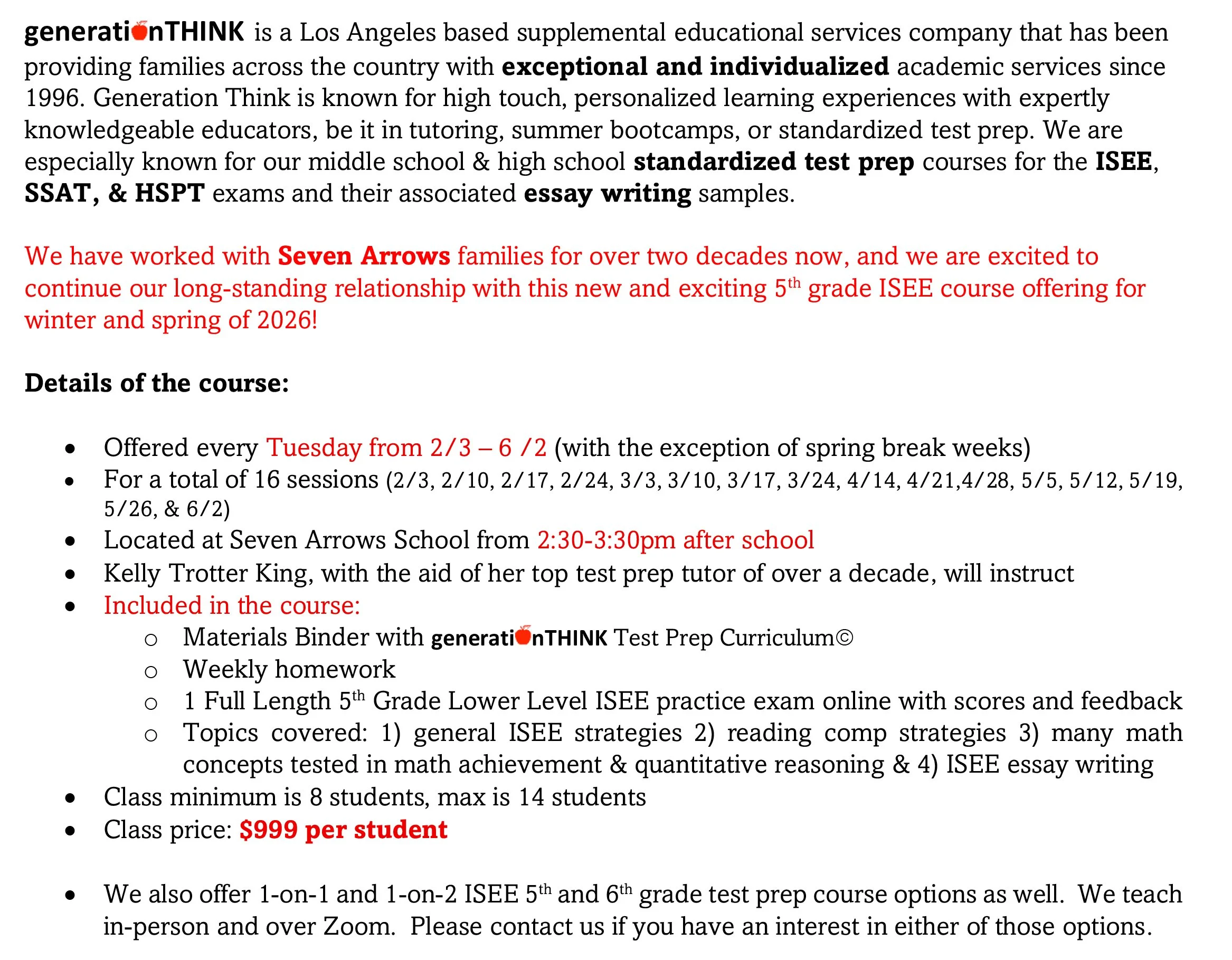 down “Subject” menu click “Test Prep”, then click “Seven Arrows ISEE Course”. We will